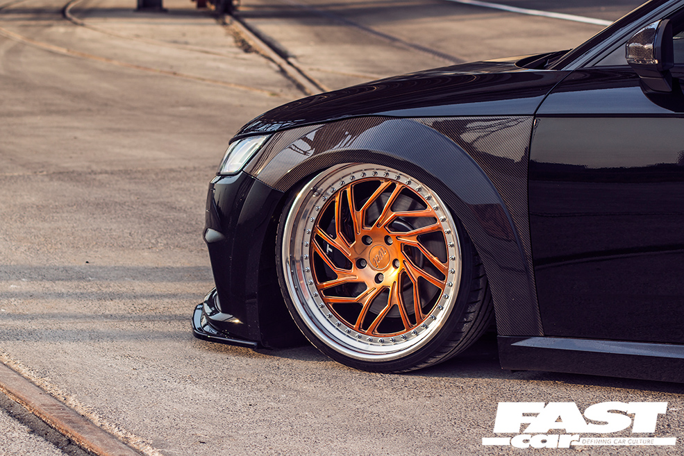“For a couple of months I found myself spending time after work down at KEAN, throwing ideas around with Kenny and Andy about what to do with the car.” After tailoring the plan to Nick’s specs and requirements, the fellas built a bespoke air-ride system for the TTS which uses Air Lift Performance 3P management, and the difference it’s made to the profile really is staggering – when the Audi airs out, angels weep and unicorns sing, rainbows appear and the world takes on a Disney-like filter. It’s that good.