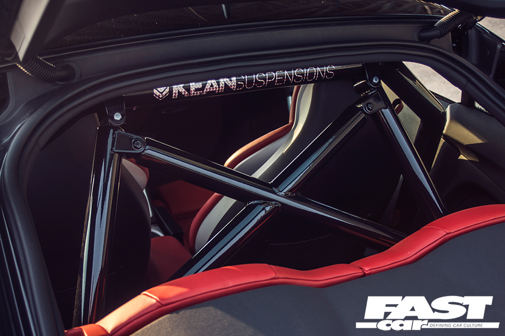 Custom Maq Racing rollcage, red shifter paddle extensions, Bang & Olufsen audio