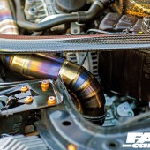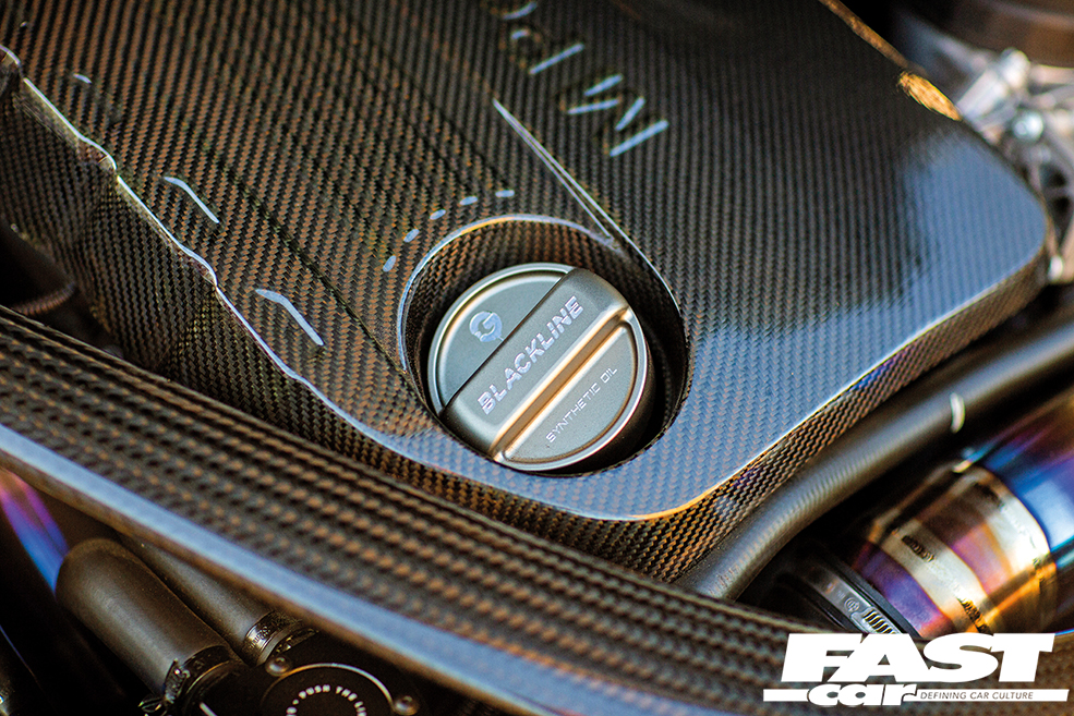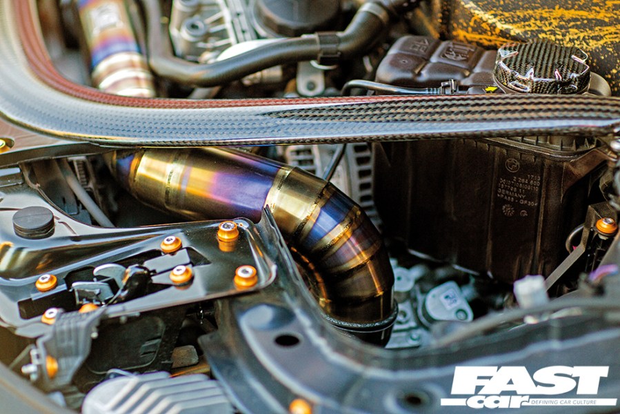 Germanic motorsport heritage and a sponsorship deal saw Christian swapping from his previous wheels to a set of BBSs. The 20” LM-Rs work so well in the custom hand-brushed aluminium finish with gold plated titanium fasteners, and measuring in at 9.5”-wide at the front and 11” across at the rear, they dominate the on-point stance, while generously proportioned Michelin Pilot Sport 4s do their best to lay down the power.