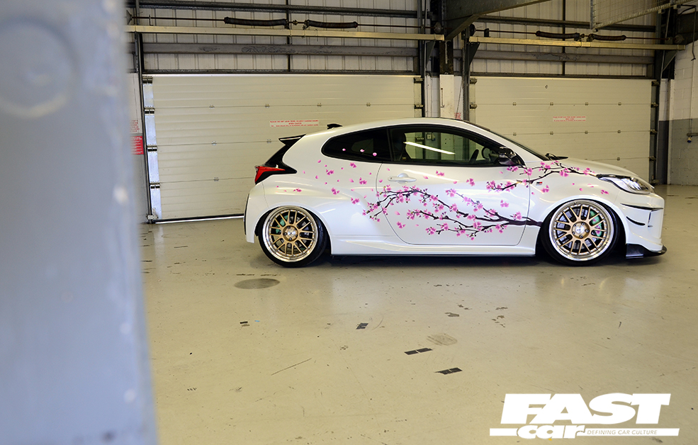 The fusion of delicate cherry blossoms and hardcore motorsport machinery has led to something pretty interesting in this bagged GR Yaris.