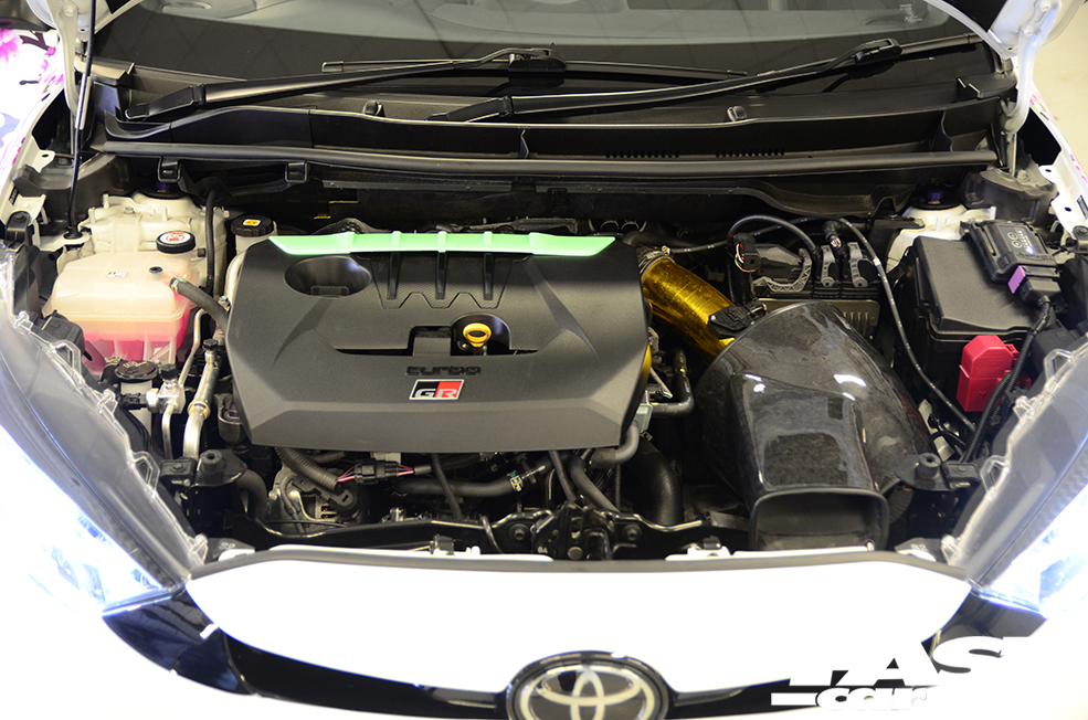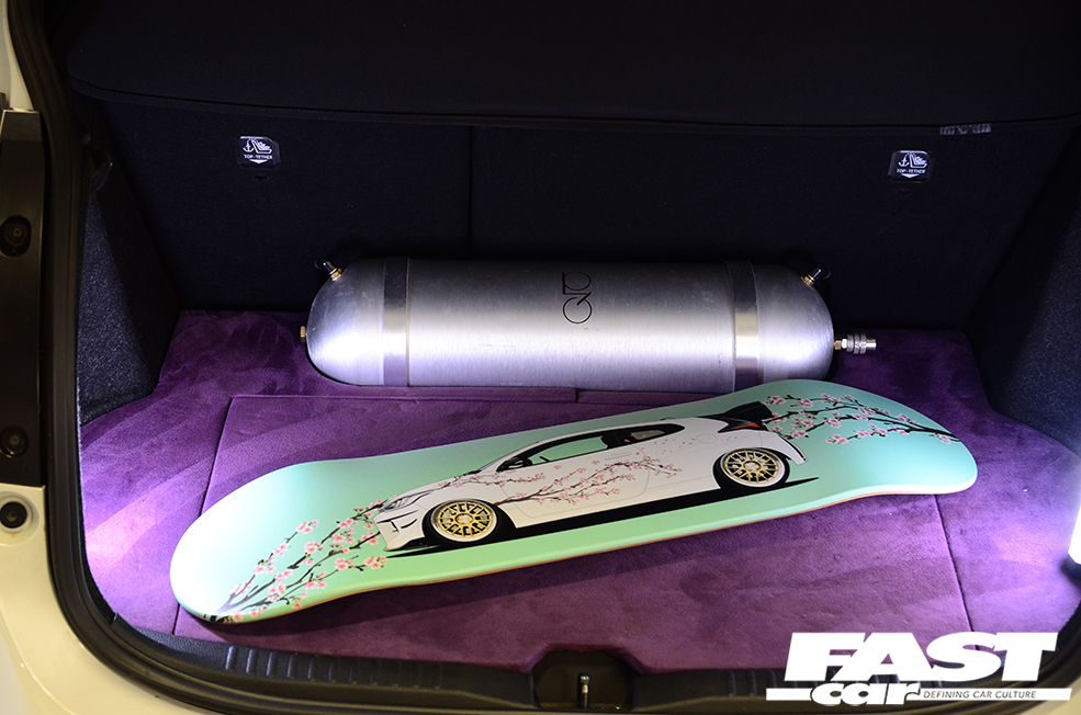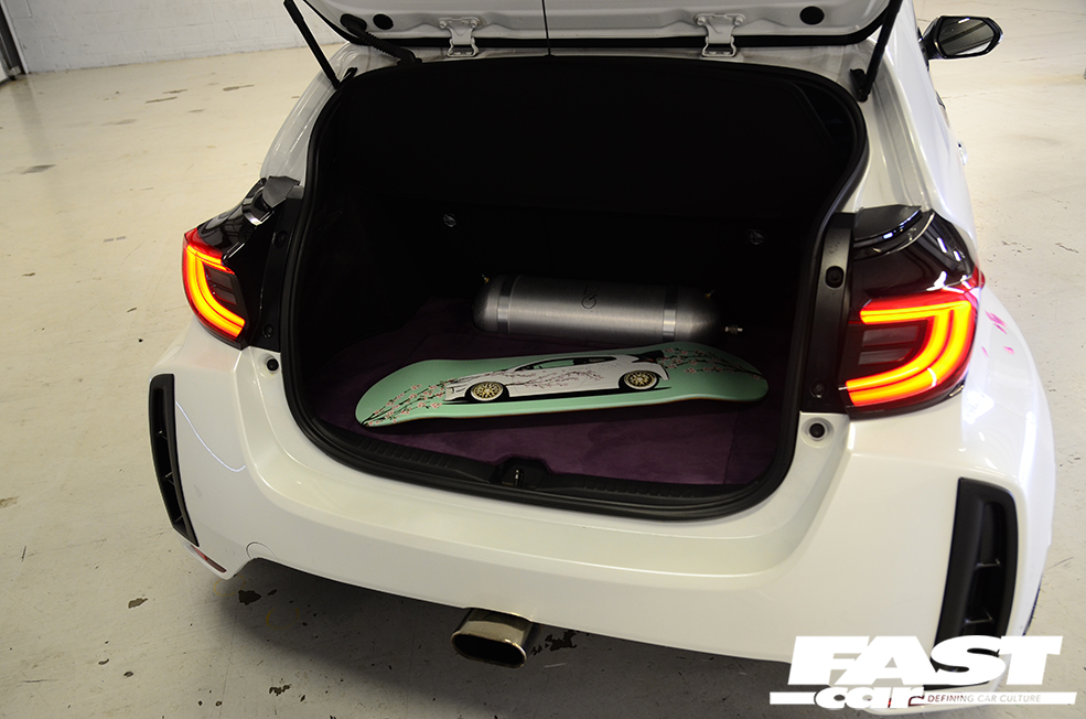 “The biggest challenge was the air suspension,” he continues. “As far as I’m aware, it was the first bagged GR Yaris in the world, which meant it was a bit of leap into the unknown. At the time I had the BC BR Series coilovers and they do a conversion kit for the front struts, but didn’t have anything off the shelf for the rears. Rather than go for custom fabrication and universal bellows, I got in touch with Ricky at Luxury Auto House who sourced the D2 air struts and I did the install myself on my driveway, like most things I do. It wasn’t too bad, but it was something I’d never worked with before so there was plenty to learn and put into practice. To this date though, not one air leak or rubbing issues so I reckon I did well!”