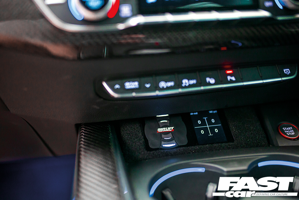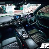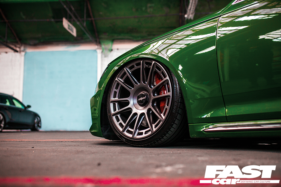 The Rotiform OZR came recommended by the team at Offset AutoHaus, and TJ’s gone for a full-fat 20-inches of diameter, no messing about; squaring up at 10.5-inches wide apiece, they certainly help to give the bagged RS4 B9 an aggressive footprint. The arches are positively bursting at the seams when it airs out, and you really can’t argue with the contact patch on a set of 285-section tyres when you have the thick end of four-hundred-and-fifty horses to deploy. A set of custom three-piece forged Rotiforms are being knocked up as we speak, but for now the carbon-clad and extremely green formula is hot to trot in the day-to-day.