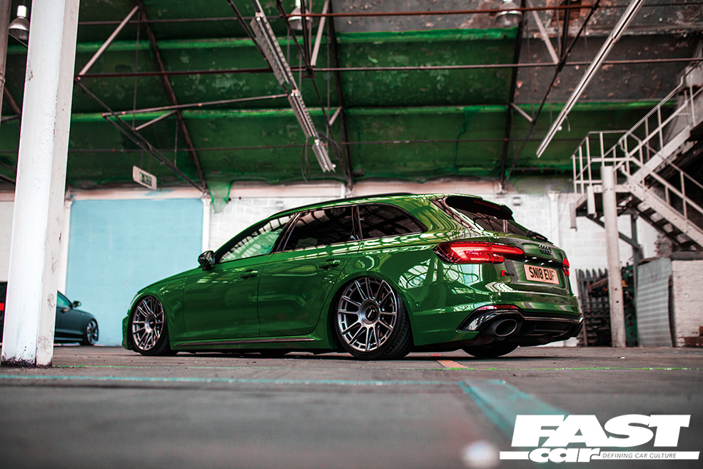 There’s something immensely cool about a fast estate car. And when it’s bright green with ludicrous horsepower like this bagged RS4 B9, it’s playtime every day…