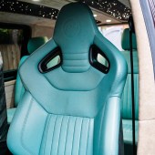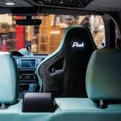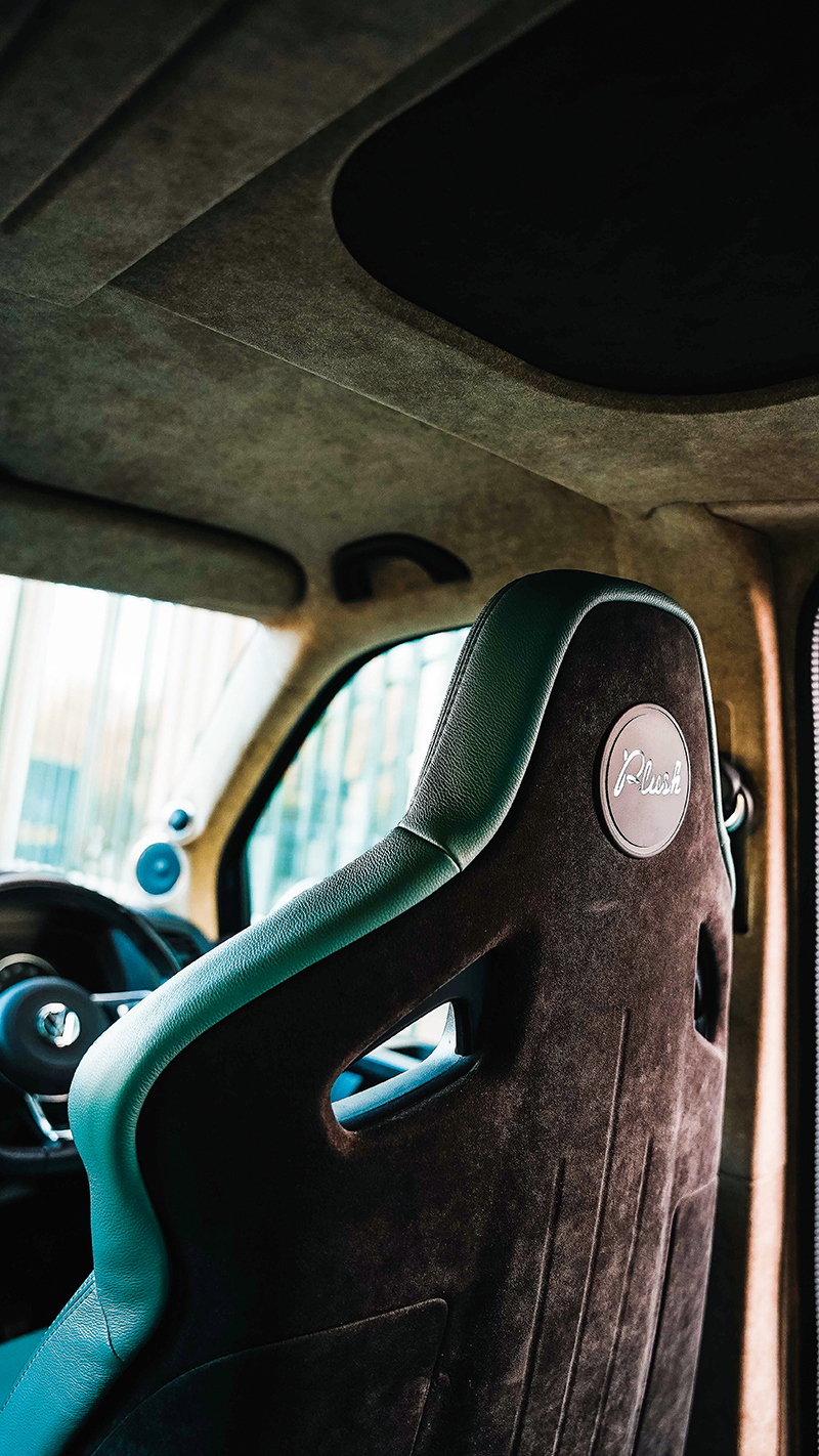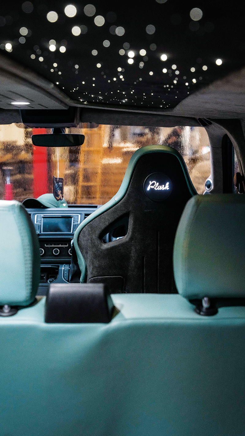 Finishing off the cab are a pair of Audi RS3 seats. Fitted on bespoke Plush Automotive subframe plates, trimmed in mint Nappa leather and with illuminated rear Plush logos they make this van about as removed from a van as you can get.