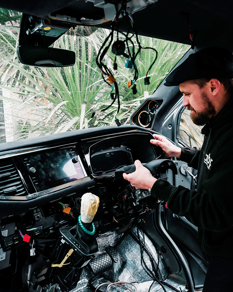 Having been exclusively a car guy until that fateful day in 2017, Luke felt compelled to deal with what he describes as ‘a big echoing tin box inside.’ Everybody knows what a carpet-lined van looks like, Plush even offer it themselves as a service. What’s the point of a demo van if the thing it ‘demos’ is already well established? How many Alcantara-lined vans have you seen? To narrow it even further, how many at this level? “With carpet being a thick material, it hides all the dips and troughs on the metal work such as spot welds etc,” explains Luke. “But not so with Alcantara! First, we had to completely smooth all the little details on the inside of our brand-new van before laying down the material. Details like this are pretty much hidden now the vehicle is complete.” All those hours on something only a few people will even know is there. No great genius has ever existed without some touch of madness (first ever Aristotle quote in PVW?).