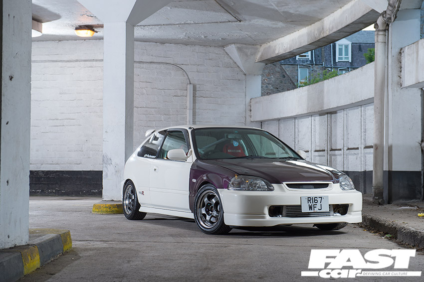 “I’m the first owner of this modified Honda Civic Type R EK9 in the UK,” he continues. “I won it at auction back in November 2011, and imported it via Torque GT. I picked it up the following January after driving down to Torque GT in Buckfastleigh from Aberdeen in my old Fiesta, which I traded in. The Civic was a grade 4 at auction – there were a few little marks on the passenger-side quarter above the wheel arch, some scores in the rear window, and a scuff on the front bumper, but other than that it was pretty much perfect.”