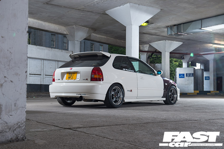 Perhaps understandably, David’s original intention when he bought this EK9 Civic Type R was to keep it stock and enjoy it purely for what it was. We hear this a lot. It’s a fleeting fancy and it doesn’t last long. “It was already lightly modified when I bought it,” he reasons, “and the part of me that said it was ‘pure’ was soon defeated! A friend had a K20’d EK9, another had a B18’d one, so it didn’t take long for the extra mods to start roll in.” He says.