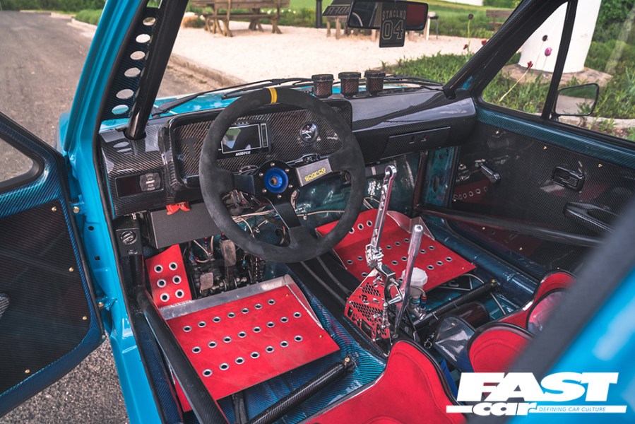 It’s safe to say that Gabriel Couty got a bit carried away when it came to adding bespoke lightweight parts to his Mk1 Golf. You see, he wanted some carbon, and ‘some’ became ‘loads’, until it was really almost everything. On the exterior, you’ll find carbon making up the mirrors, USDM bumpers, door handles, grille surrounds, fuel filler, window pillars, it’s everywhere. But when you open the door and peep inside, you’ll find your definition of ‘everywhere’ being reworked, as there’s just so much carbon inside it’s unreal.