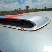 Modified bonnet with scoop, industrial bonnet clips, protective radiator mesh, extended wheel arches, roof-mounted Subaru Impreza bonnet scoop for cabin ventilation
