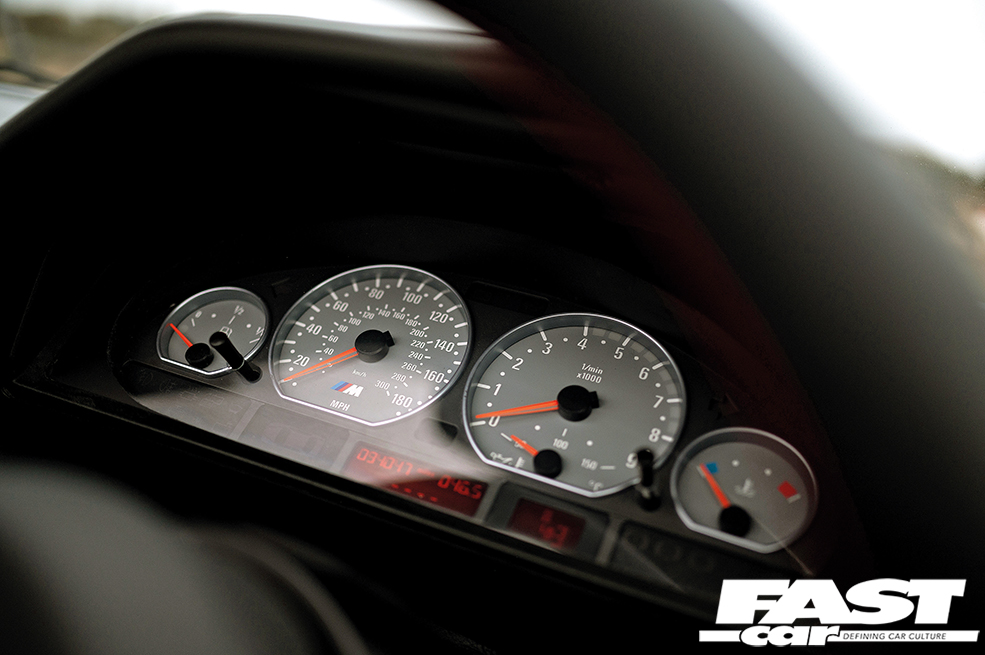 3.2-litre straight-six S54B32, dual 2.25” stainless steel Scorpion exhaust. Getrag 420G E46 M3 six-speed SMG II, 188mm medium-case eight-clutch LSD with 45% locking and 3.91 final drive