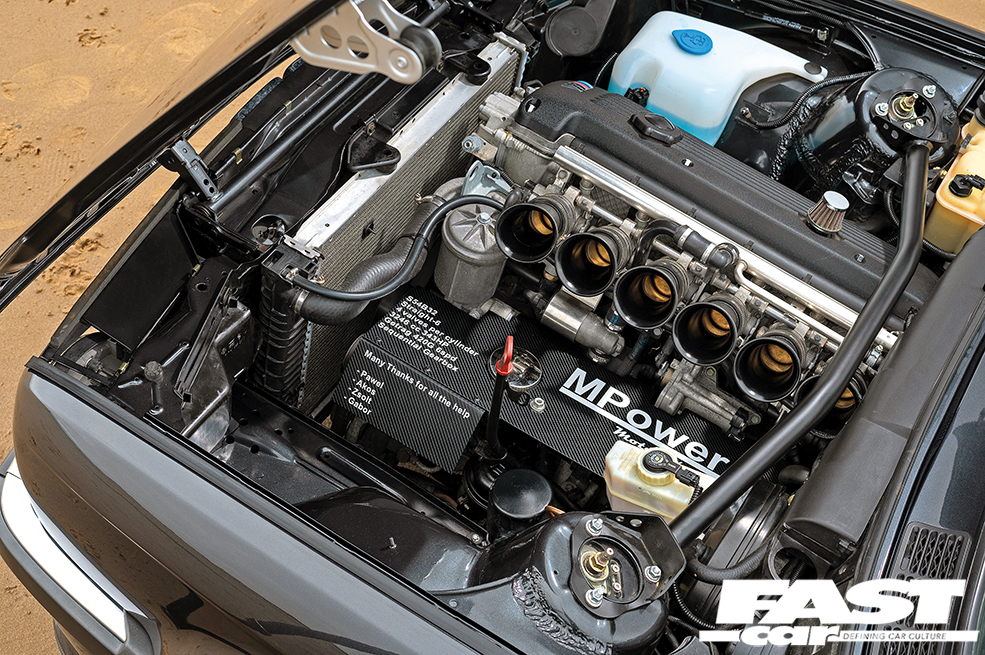 “I had to modify the front subframe to keep the original sump, that was the first challenge,” he says. “The rear end is from an E36 Compact. I wanted to keep the engine in factory-standard form, so the only modification is the diff – it’s a 188mm medium-case eight-clutch LSD with 45% locking and a 3.91 ratio for quicker acceleration. Oh, and a few mods to the exhaust manifold and velocity stacks for the throttle bodies to make more noise!”