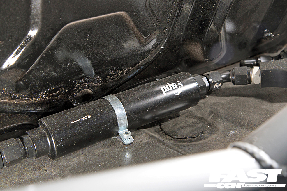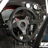 8.5×18” (front) and 10×18” (rear) Rondell 0058 wheels with 235/40 (front) and 255/40 (rear) Federal 595 RS-R tyres, D2 Drift Series coilovers, custom axles, relocated steering rack, electric power steering kit, custom suspension mounts, fully-adjustable arms, uniballs and solid aluminium bushes throughout, Brembo four-piston calipers with 325mm discs (front) and twin calipers and 315mm discs (rear)