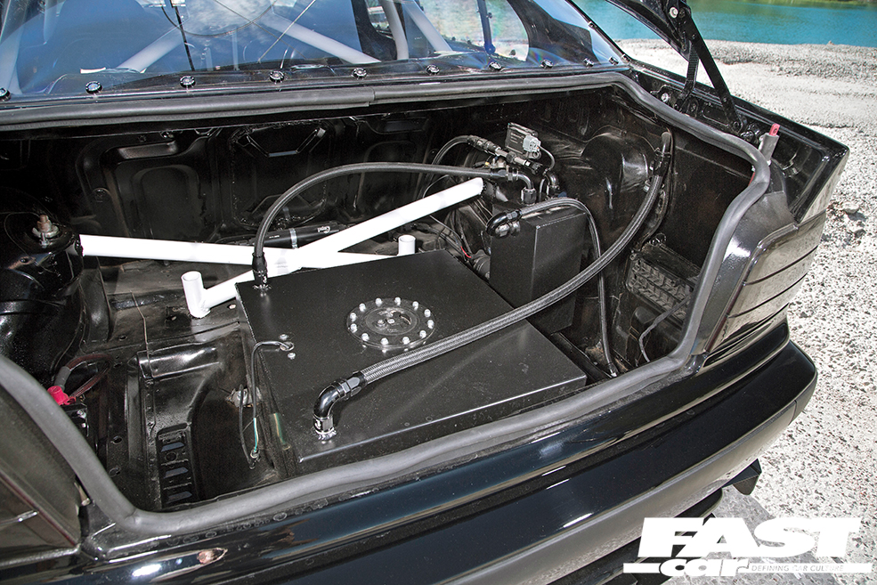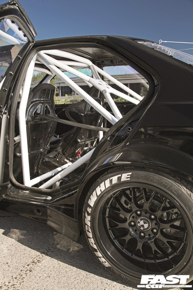 There’s a lot to take in with this E36 3-Series because it is an absolute monster that’s as much about bark as it is about bite, but if we’re going to start anywhere then it has to be with the engine. “The block is from an M50B25 with an M54B30 crank and forged rods and pistons,” explains Andreas, “and the head is from an M52 and has been ported and rebuilt with solid lifters to handle the 8500rpm limit, and is fitted with oversized valves. I have removed the Vanos due to the high lift and duration on the cams, which have a 290° intake duration and 11.55mm lift and 282° exhaust duration and 11mm lift. In order to handle the high revs an ATI crank damper had to be fitted, and there’s also a dry sump lubrication system. The turbo is a BorgWarner S400 SXE with an 82mm inducer and an 88mm exducer, and to get the turbo started I use an Eaton M122 supercharger running at about 1.3bar of boost,” he says. “Other fun parts are the S54 individual throttle bodies, custom-made plenum, charge pipes, mounts, turbo manifold, dry sump pan etc. and I use a Link G4 system along with a Race Technology dash to control the engine.” That’s an awesome engine spec and the end result of that mad science is a frankly insane 1014whp and 795lb ft wtq, which is transmitted to the rear wheels via a GS653BZ six-speed manual from a 530d, with a custom-made propshaft to the 210 diff and upgraded driveshafts as well. Staring into this engine bay is like staring into a black hole itself, such is the sheer power contained within, and we have unlimited respect for Andreas for just how much work he has pumped into that unsuspecting M50 and the end result he’s achieved – it’s just breathtaking.