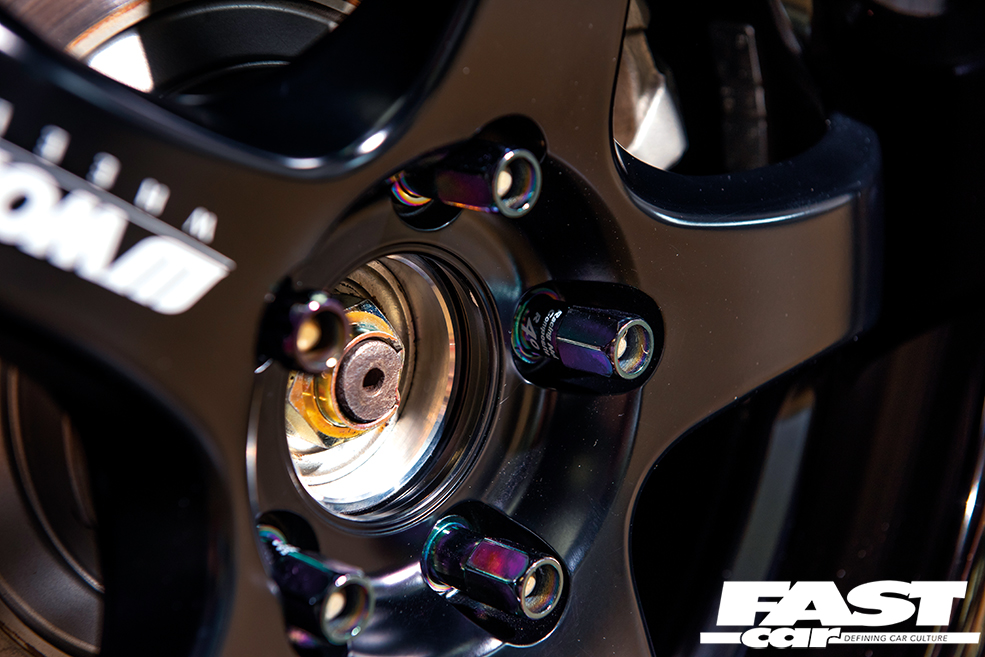 ‘The kit’s wider arches also meant that I could run the wheels I wanted too,’ says Rob, pointing out the 18in Work S1R split rim wheels with black anodised barrels and satin black centres. ‘They are in a staggered fitment with a 9j front and 10j rear, retaining the factory one inch stagger from the factory.’