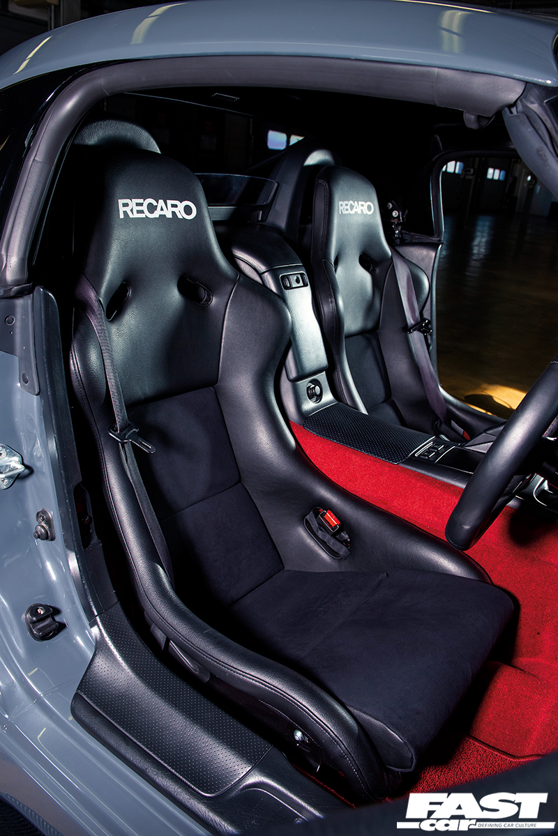 With input from his new US friends, Rob formed a very specific vision of what his ultimate S2000 would be and just six months after purchasing the car, he took it off the road and, along with his equally car mad dad, stripped the hot Honda to a bare shell before sending it off to the bodyshop to have the engine bay, underside and inner arches painted in Lamborghini Telesto Grigio pearl grey.