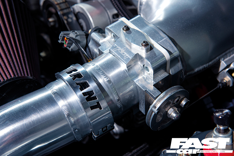 Combined with the turbo kit and exhaust system, Rob bought a large front-mount intercooler and an uprated fuelling system incorporating an Inline pro fuel rail with ID1000cc injectors, twin Bosch 044 fuel pumps and a custom boot-mounted fuel cell – the engine build was starting to get serious!