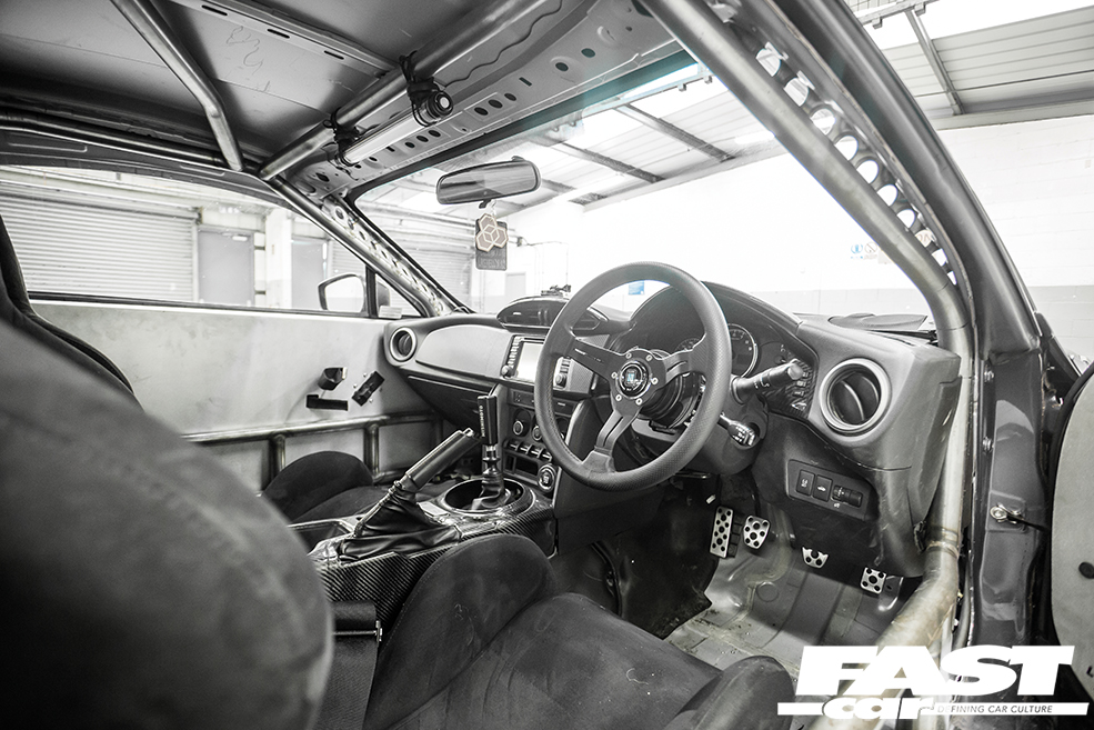 “As you can see, most of the work on the car is custom,” he enthuses. “There were hundreds of hours of fabrication, as everything on the car is TIG-welded, and all of the pipework is pie-cut rather than simply bent. My go-to for fabricating and custom work is Billy at HDF Motorsport – he sorted out near enough everything custom, from the rollcage to the tube front. For a young guy of similar age to myself, his work is unbelievable! After seeing the work he’d done on a friend’s car I had to get my BRZ to him for the cage, and initially that’s all it went down there for… but it quickly snowballed after we orchestrated a few deals, and we both got a little carried away!”