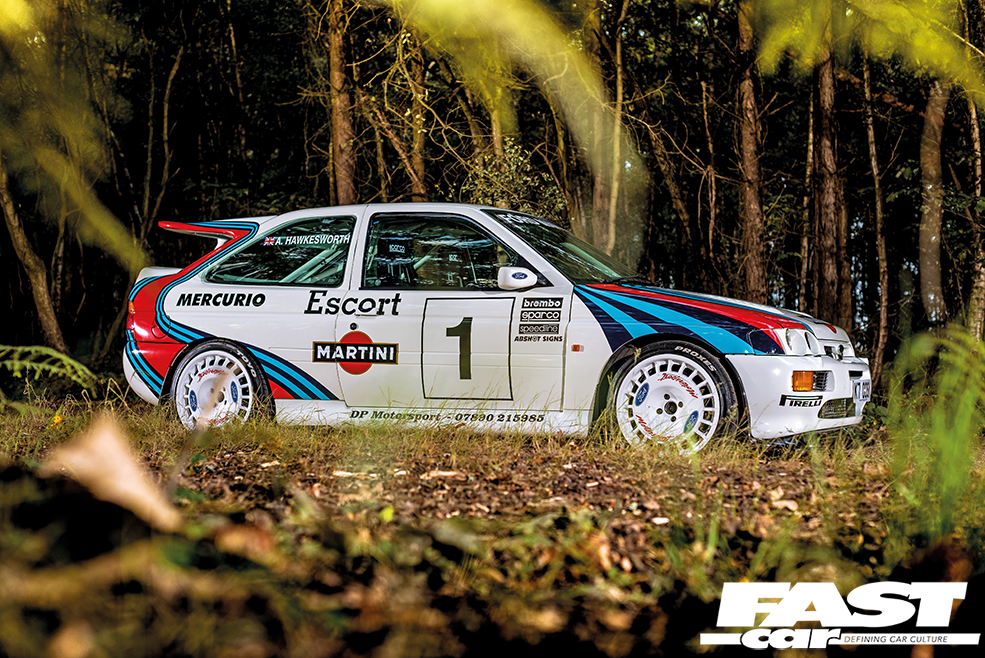 Only when you get underneath Adam Hawkesworth’s handsome Martini Escort Cosworth and notice a distinct lack of front driveshafts will you truly realise just how passionate he is in making this 530bhp weekend toy as hilariously terrifying as possible…