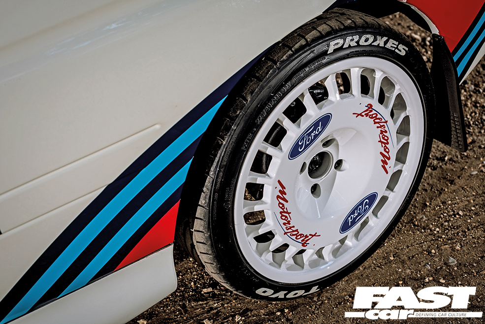 It’s why you could soon find Adam jacking his thoroughbred three-door up on his driveway and boldly going where very few EsCos owners before him had gone. Out came the front running gear, with the rear diff replaced with a sturdier 7.5in LSD affair originally seen in the 2WD Cosworth models; the job topped off with a trick adjustable six-degree rear beam conversion to give him the ultimate control over just how playful the rear end would become.