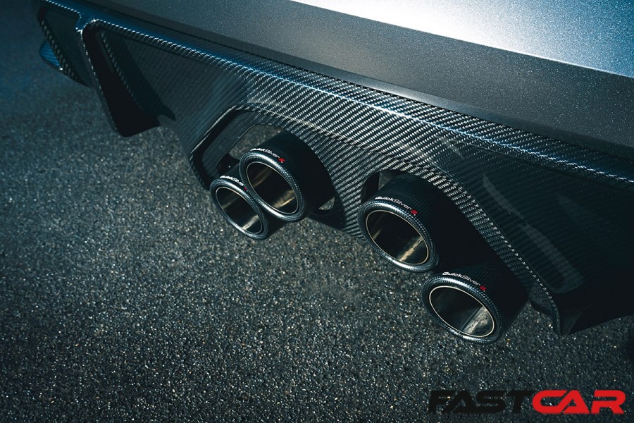 “On the performance side, we have upgraded the air intake with an MST Performance induction kit which sounds great, along with a downpipe-back exhaust system, removing the GPFs, that we developed alongside Quicksilver Exhausts. This is paired with the Sound Architect system, which overrides the OEM valves, giving a much better range of control – and, of course, noise! We decided against remapping this car as we felt it had plenty of power and retains its warranty with what we have done. Big thanks to Quicksilver for their continued support and work with us over the years.”