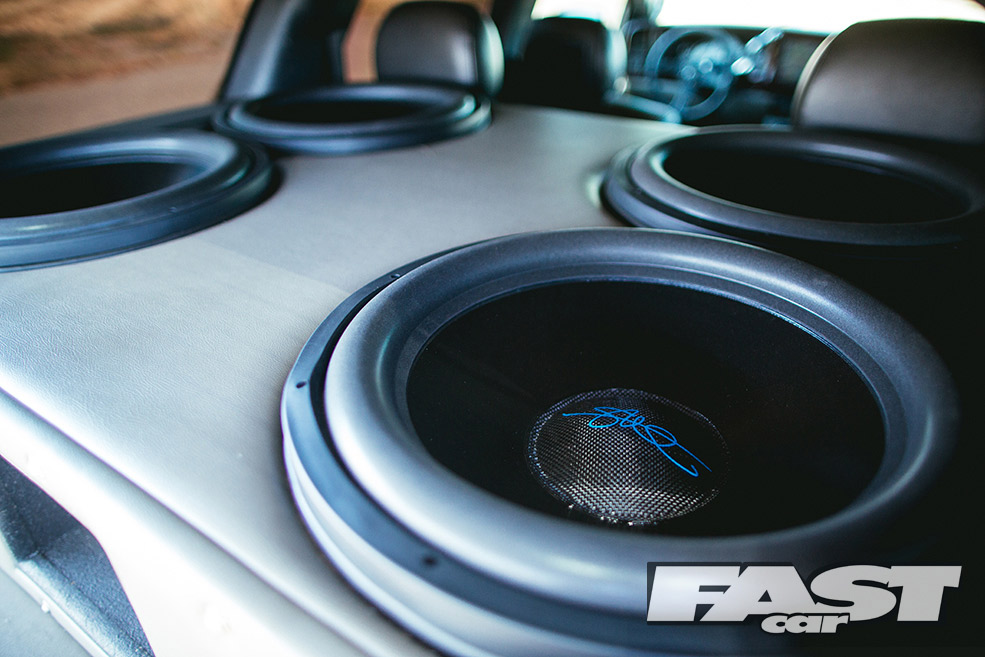 This Tahoe’s most headline-grabbing features are the suitcase-sized pair of Rockford Fosgate T2500-1bdCP power amplifiers used PER WOOFER! That’s EIGHT monstrous amps to drive four dustbin lids of hellacious bass. These are rated at, yes, 2.5KW each, and the ‘CP’ means Constant Power. So, Steve has a true 20Kw of solid bass. Always.