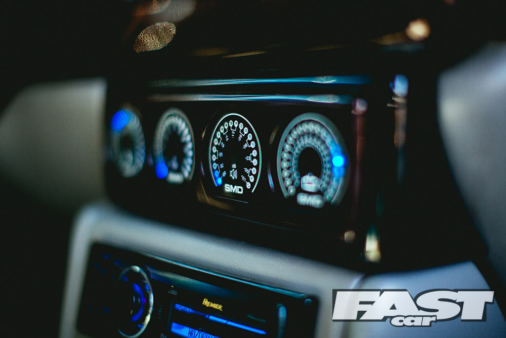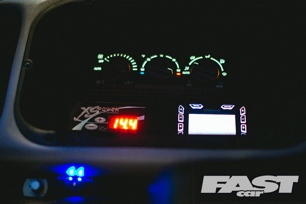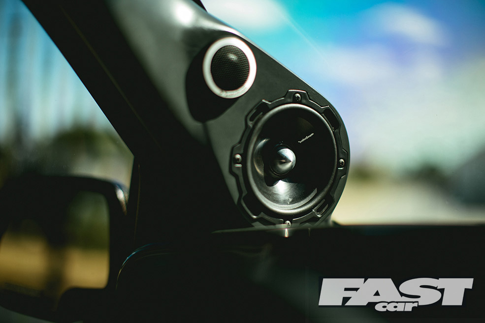 Meade-san has a Rockford-Fosgate T1000.4 running all the 6.5s. An old one with LED meters. Another runs the eights in the doors and thanks to the Tahoe’s absurd headroom, there are A-pillar mounted one-off special four-inchers onboard too. In addition to that, there’s a 600.2 running five sets of the T1 separates tweeters. The sixth pair of tweeters is an, erm, ‘two-off’ set, made just for Steve by Rockford. He over-ground the flanges of the first set of ‘one-offs’.