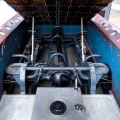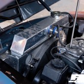 The final piece of the puzzle was the interior, and once again Jack’s played an absolute blinder. The alloy bomber-style seats were hand-made fairly early on in the project, and over time the approach has evolved along with the truck’s changing vibes; sitting them on floating frames, he decided that weathered brown leather would be the ideal finish, and handed them over to James at AutoTrim in Leicester to do the business. While this was going on, Jack was building a stealthy hidden rollcage into the cab, and at the upper edge of this you’ll find a variety of auxiliary gauges to monitor the bonkers engine, the panel being trimmed in matching leather.