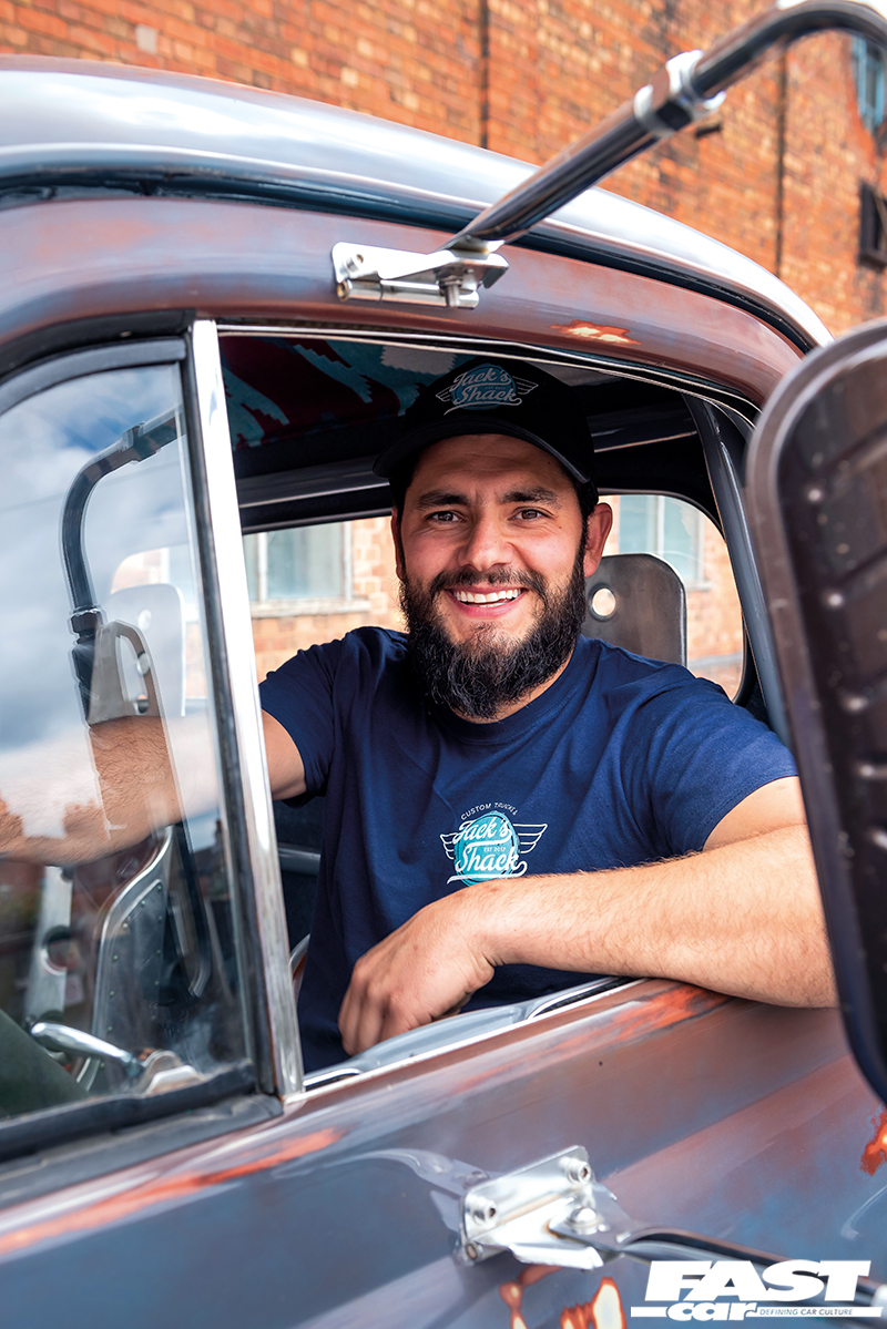 Fast-forward to 2021, and we find him in the boss’s chair at Jack’s Shack, his custom campervan and hot rod shop in Leicester. Alongside the everyday bread-and-butter of applying his extensive skills to the creation of bespoke VW campers, the business has always had a dark side, existing to quench a thirst for malevolent modification. The sign may say ‘Established 2017’, but the thread of this really runs back through his childhood. “I started building cars at sixteen, when I bought a classic Mini,” Jack recalls. “I fitted a Zetec twin-cam engine and made it RWD! Next up was the Mk1 Escort estate that I fully restored and customised, and after that I found my love for classic American trucks – which just snowballed to where I am today!”