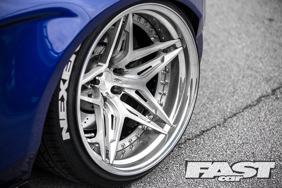 Prototype Rotiform VDA wheels, AccuAir air-ride suspension with E-Level management (using bag-over strut setup from Universal Air), front boot air install.