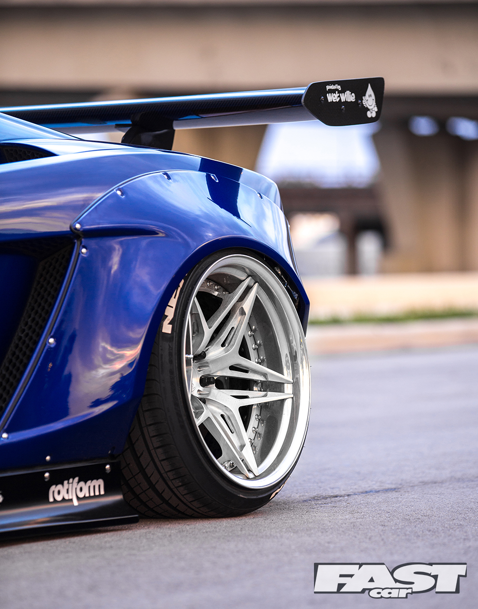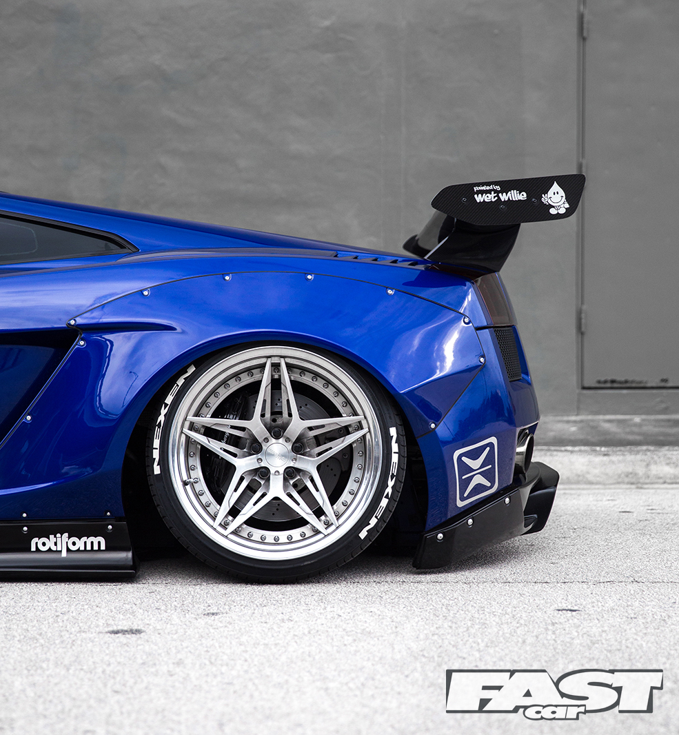 “I have to say the build went very smoothly throughout, as Optimus had built the first Liberty Walk Gallardo in the US so they worked out all kinks on that car,” says Allen. “I would have to say the only real hurdle was deciding on the wheels: I really wanted something unique, so Joe from Optimus worked closely with Rotiform, and they designed a brand new wheel for this car – which was better than I ever imagined!”