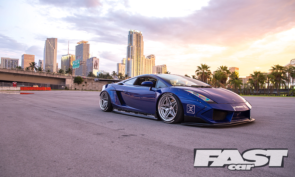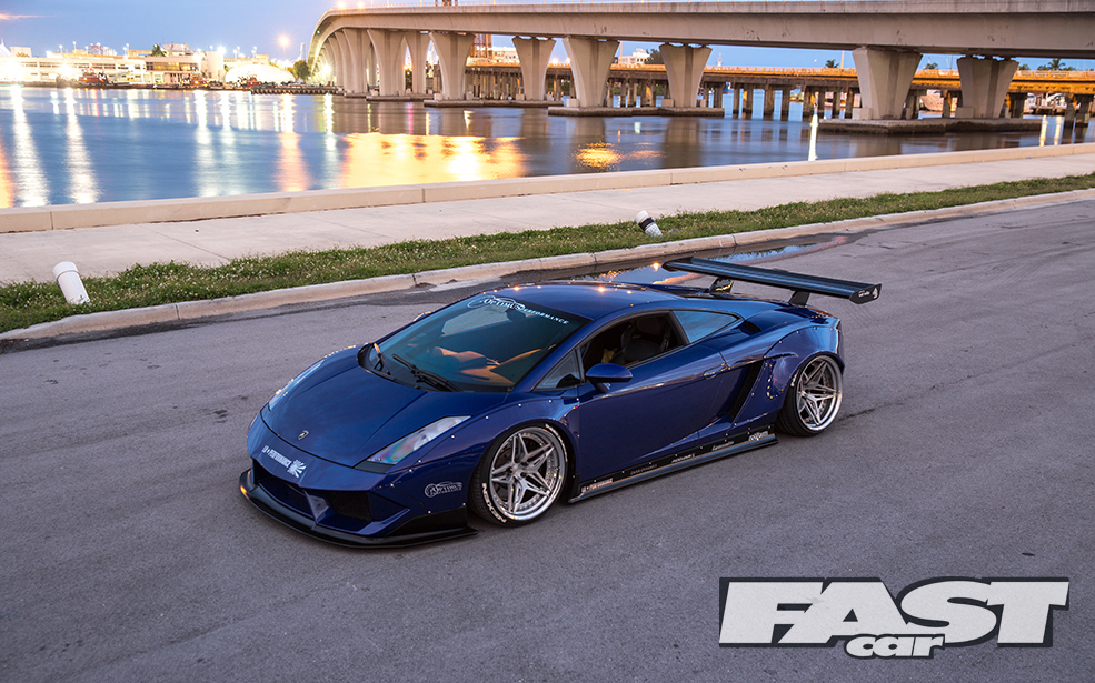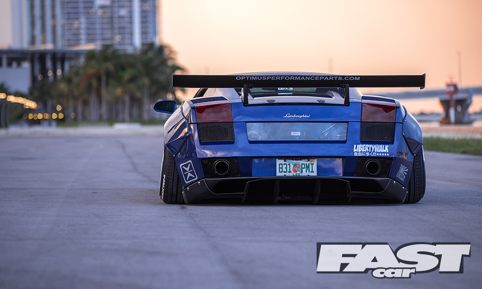 The simple answer to this is that Optimus Performance blew in like a whirlwind and shook the car until it was unrecognisable. This Fort Myers, Florida-based custom shop sure know their way around a hyped-up supercar; indeed, they were the first people in the USA to build a Liberty Walk Gallardo, and what they don’t know about fattening the flanks of a raging bull basically isn’t worth knowing.