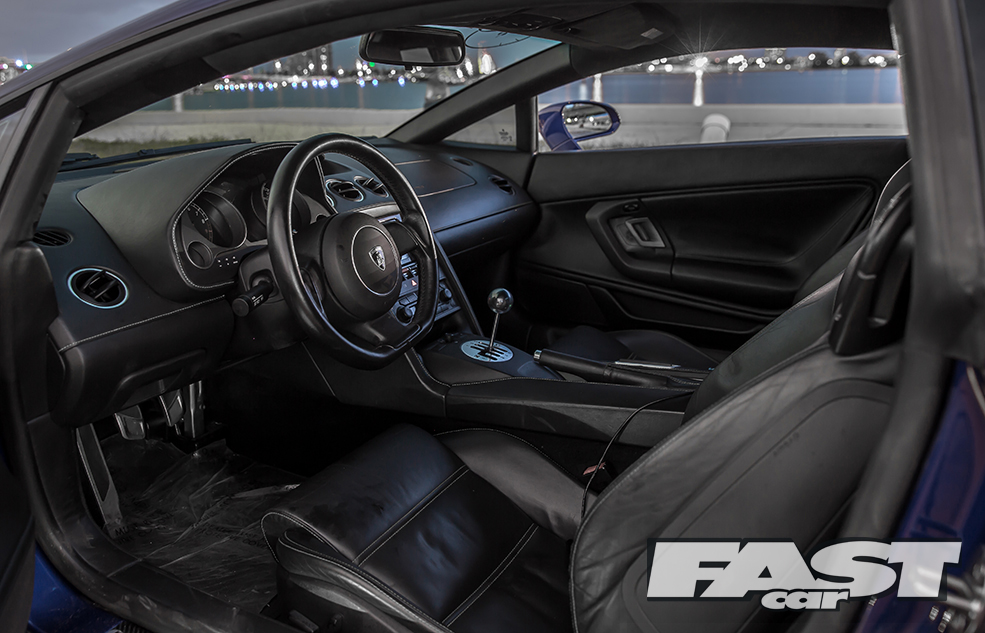 A little context, then, before we dive into the radical nature of the modifications. As a base for a project, the Gallardo is a pretty brutal and savage thing. It’s the car that really pushed Lamborghini into the volume-selling mainstream; production ran from 2003-2013 and they shifted over 14,000 units. The first-gen cars, like this one, came stuffed with a 5.0-litre V10 producing a nice round 500bhp. It’d do 0-62mph in 4.2 seconds and go on to 196mph. Standing quarter-mile? An unstressed twelve seconds. Some people may call it the ‘baby Lambo’, but don’t go thinking it’s not serious.