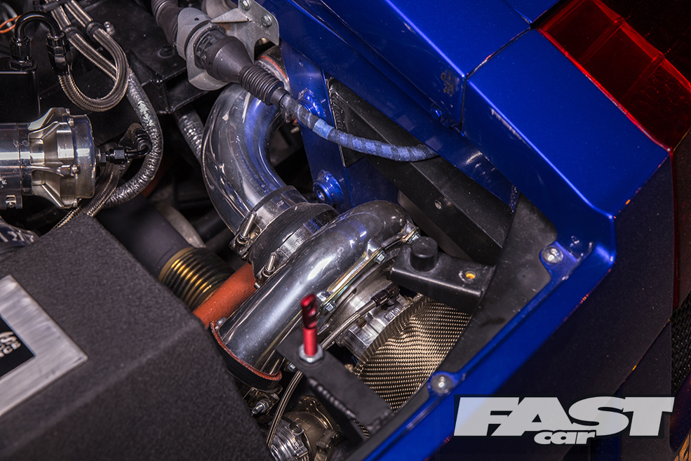 Turbo CT43X triple ball-bearing turbos, Haltech piggyback SAFC, Steve Pearson tuned, 6-speed manual with twin-disc clutch.