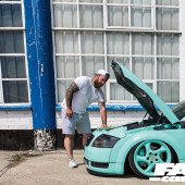 Getting the TT suitably dropped is a full Air Lift air-suspension kit complete with V2 management, the choice of champions! On top of that the Audi has also had a chassis notch and a few modifications to the subframe allowing the car to really deck out. Dan has always done most of the work on his cars himself and the TT is no exception. When it came to the exterior he’s not been shy with the smoothing. The front plate recess has disappeared along with the washer jets, grille surround, side repeaters and boot badges. Even the wing mirrors are gone, say whaaat!?