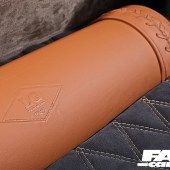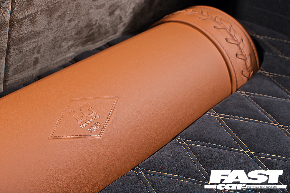 The interior doesn’t disappoint either. Dan has binned off the standard Mk1 seats and fitted a set of Mk2 tan leather ‘baseball’ stitched seats instead. Audi supply these seats as standard, but to take things further Dan got in contact with Lawrence from LG Trimming. Laurence has trimmed the rear bench, door cards, knee protectors and a load of other goodies to match the front seats. The boot is pretty special too. The floor has been finished in charcoal Alcantara with tan diamond stitching.