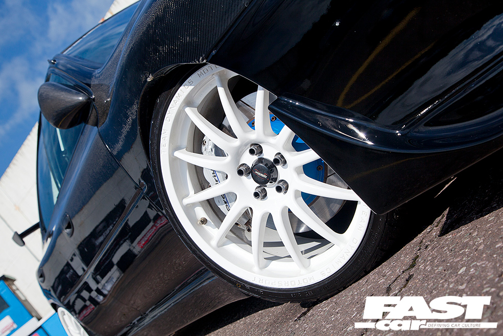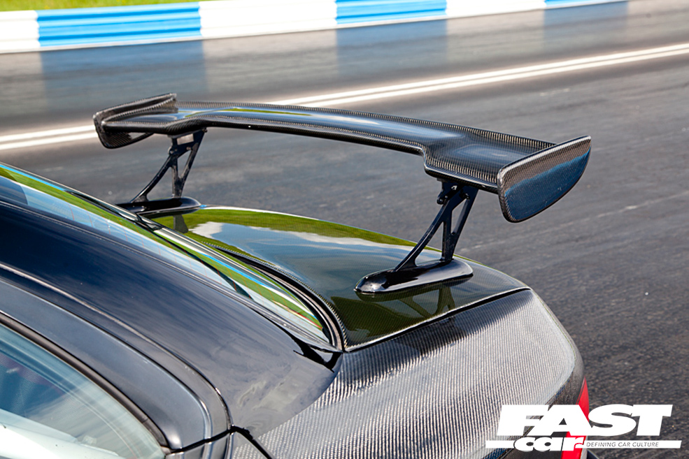 Rob has owned the car for a year now and those 12 months have been spent refining and adding to the carbon-covered beast. As well as tweaking the suspension and the interior, Rob has even found time to change the front end, which is now his favourite angle of the car: “People are always telling me how menacing the front end is. It looks like it could eat you, so people always move out the way,” laughs Rob.