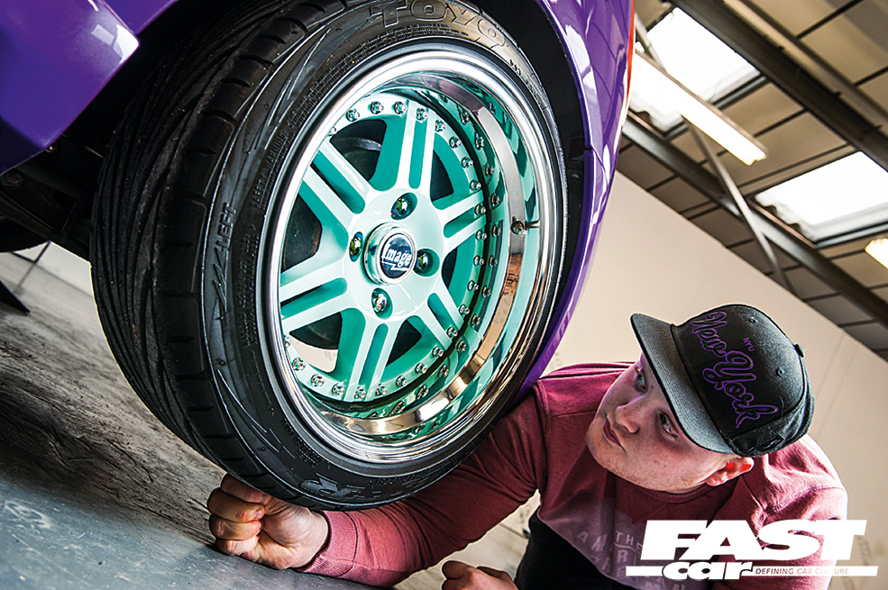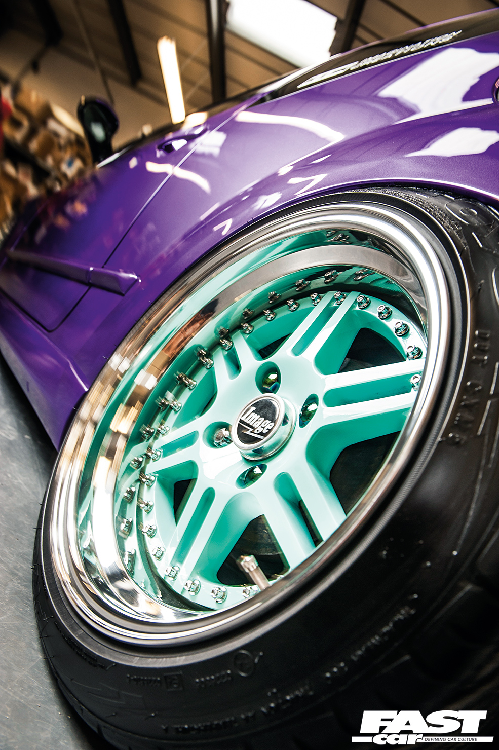 After a fair bit of head scratching, Chris from Imagination Creations and Joe settled on a custom, mixed-purple paint. Every inch of the car has been covered in this deep purple finish and makes for a fresh alternative to the usual Euro colours we see. The car was taking shape, but even with the coilovers, it still wasn’t sitting quite right.