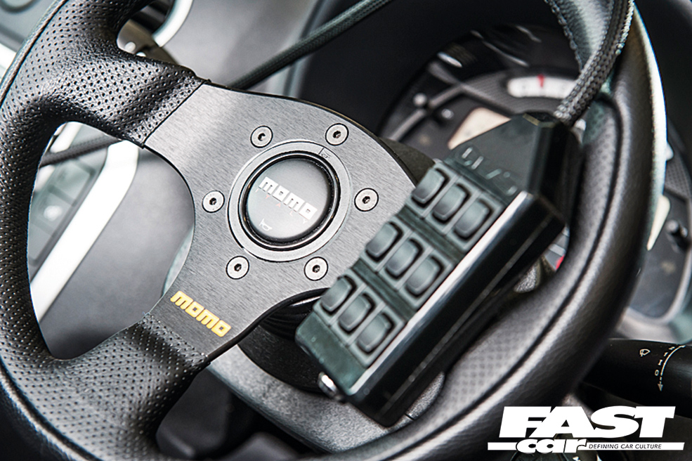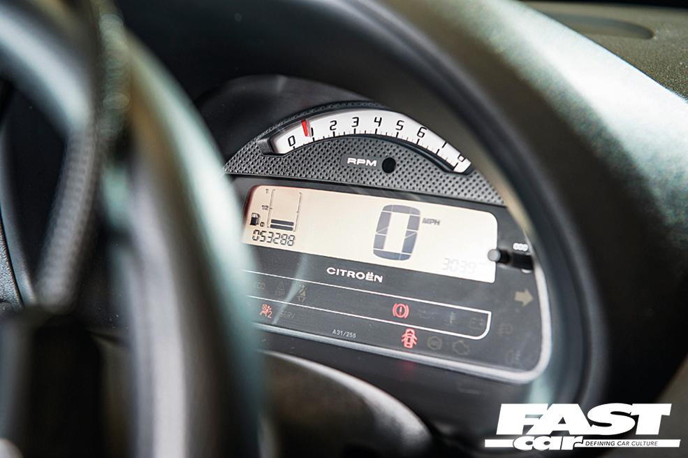 There was only one way to go – to really dump the C2 on its arse, so Joe booked the car in with HavAir. The Citroen is now fully loaded with a four-way air-ride system that allows it to cock a wheel at the flick of a switch. The rear seats have been binned, and replaced with a pair of three gallon tanks that Joe had painted to replicate a pair of Duracell batteries. The interior has been treated to a pair of Recaros and a 300mm Momo wheel. A JLW3 Audio sub and amp combined with an Alpine headunit take care of the tunes, while a Powerflow custom exhaust system gives the car a nice little burble.