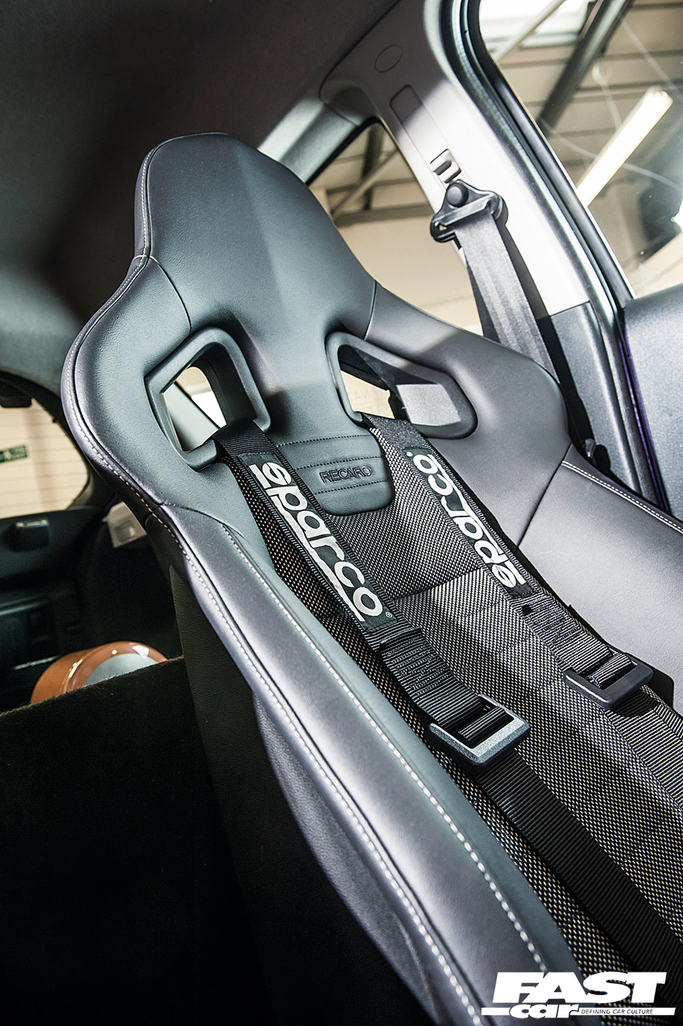 Stripped rear seats, custom boot build with air tanks custom painted as Duracell batteries, Recaro VXR bucket seats, 300mm Momo steering wheel, handmade custom billet aluminium gear knob