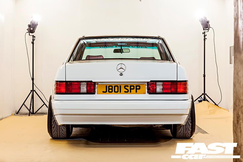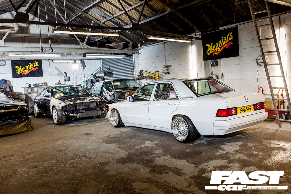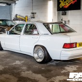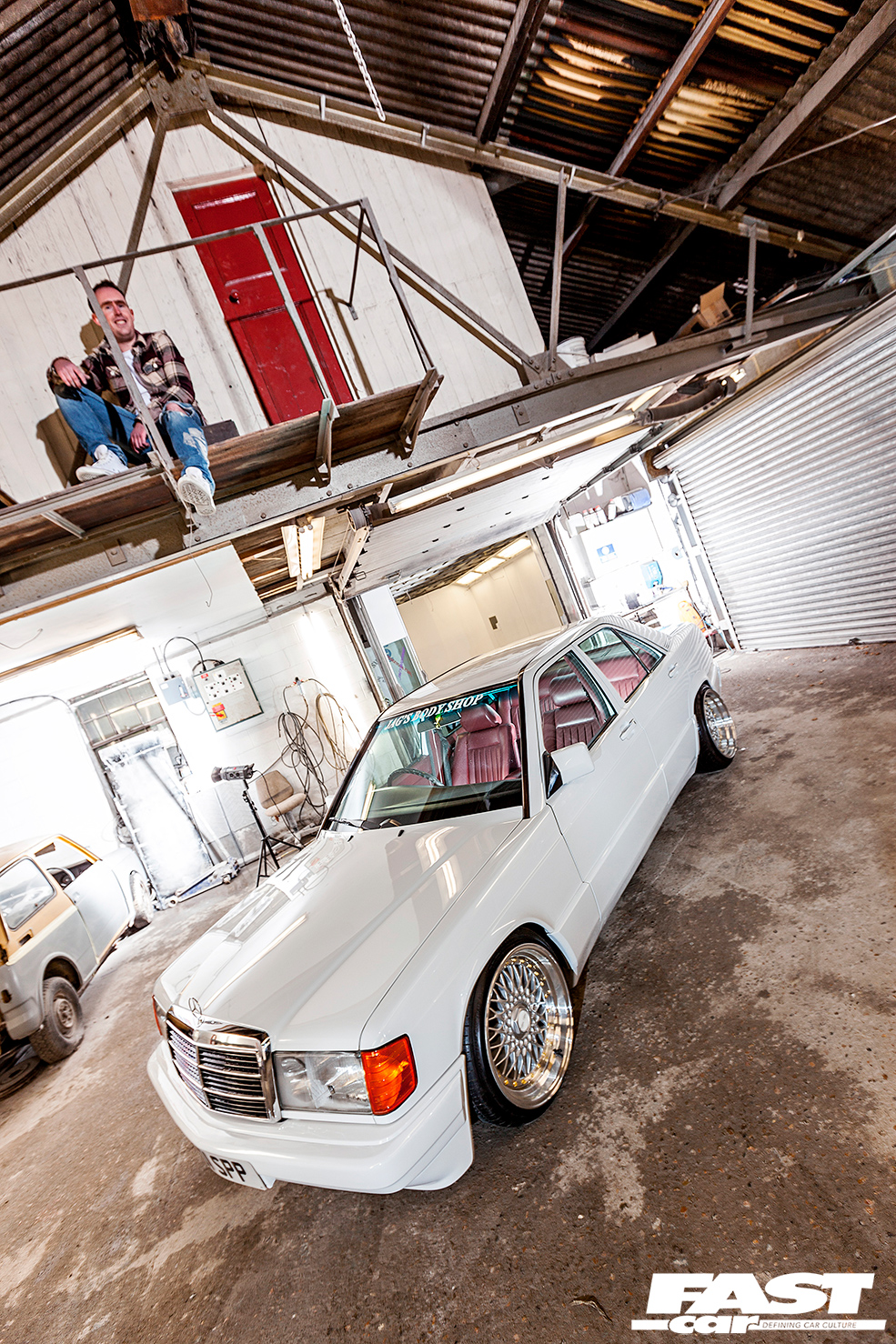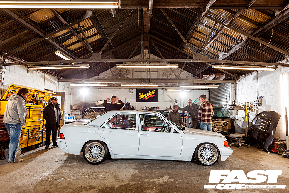 James is somewhat of a veteran modder at heart, with a long list of past hits under his belt, including two other Mercs, an Audi A3, an E46 Beemer and a whole load of other slammed motors. Something was missing though, and James still had an itch that had to be scratched. With visions to build his ultimate old school Mercedes, he headed over to speak to his mate Jag from the aptly named, Jags Bodyshop. “I wanted to build one more 190E, but build a decent one with a bit of everything. It was Jag that encouraged me to go out and find one,” explains James.