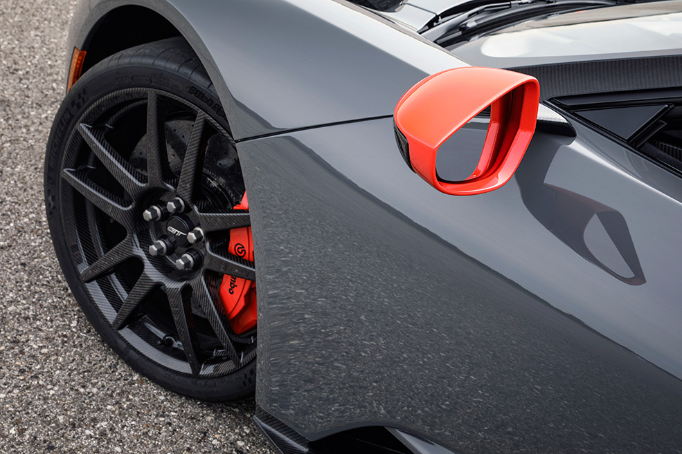 3. The Ford GT Carbon Series model is 18kg lighter. Thanks to lightweight parts such as carbon fibre wheels, a titanium exhaust, titanium wheel nuts and a lightweight polycarbonate rear hatch.