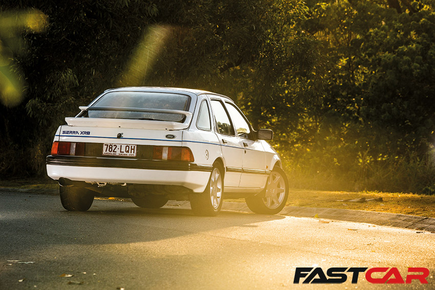 Keith says, “Growing up, my mum had the Sierra XR6, but we were certainly a V8-orientated family. I went into partnership with my dad and a mate, Swanny, running a V8 shop retailing body parts, spares, engines and the like. Swanny owned five Sierra XR8s, so I got to know the vehicle then. I’d owned a VW Beetle and Golf and was looking to get a V8 along the lines of the work we were doing. It had to be a daily driver but something I could track, too.”
