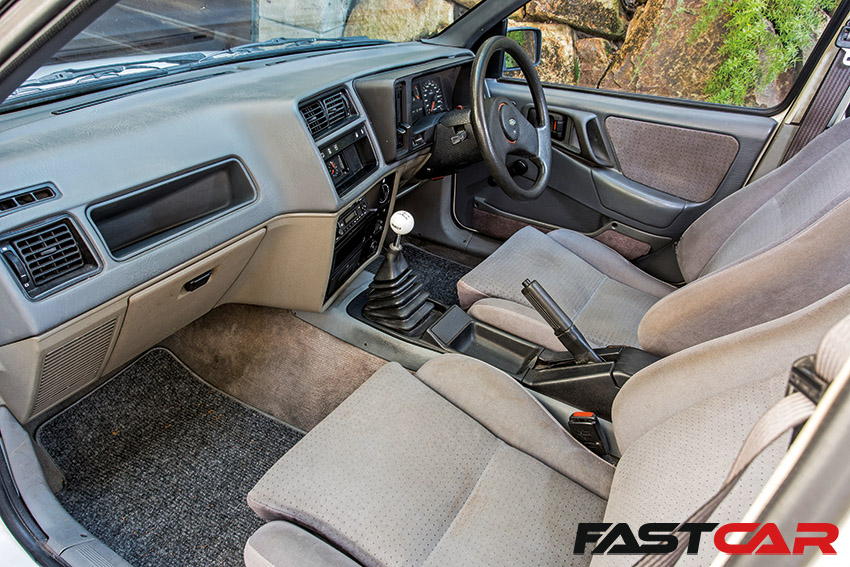 Also, to Ford South Africa’s credit, the firm didn’t go bonkers shouting about the special nature of these road cars. All 250 came only in white with the body’s lower trim painted Ford Motorsport blue (Keith’s has been repainted white), while a subtle tri-blue strip ran along the flanks and boot. Here was the only XR8 badge, while above it was the only real clue to the car’s performance nature — the bi-plane rear spoiler from the XR4i.