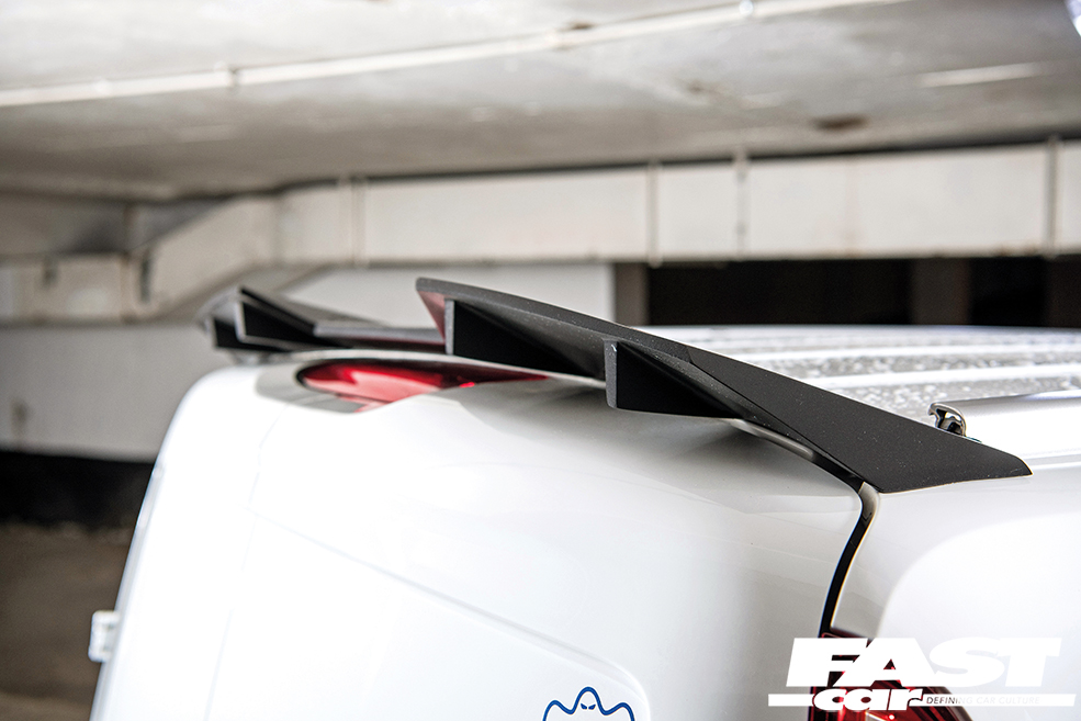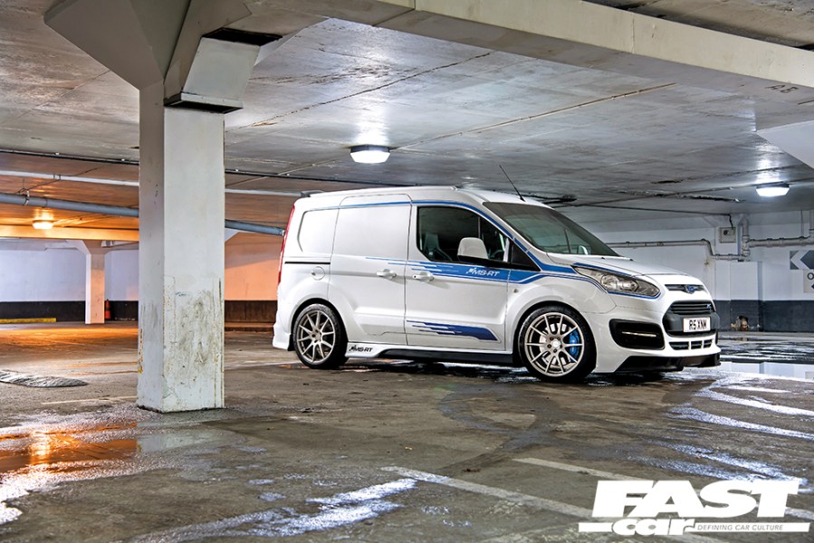 So when someone with this sort of background buys a van, it’s not just going to be any old van. Indeed, Jo went for a 2017 MS-RT Transit Connect – the rakish variant packing a full aggressive bodykit, chunky OZ Racing wheels and a quad-exit stainless exhaust. It was already modded from new, so that’s job jobbed, right?