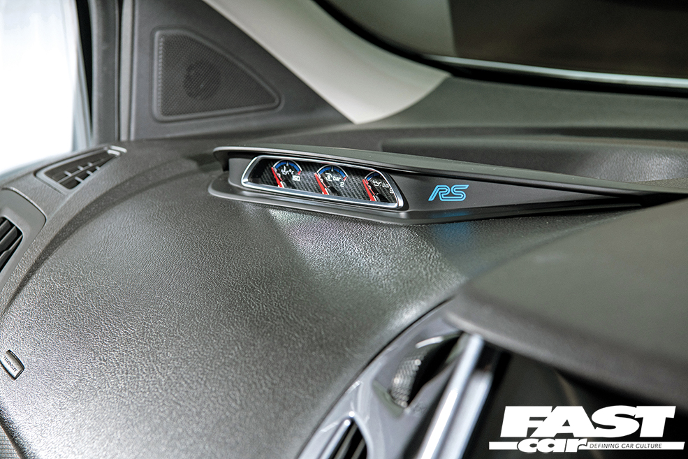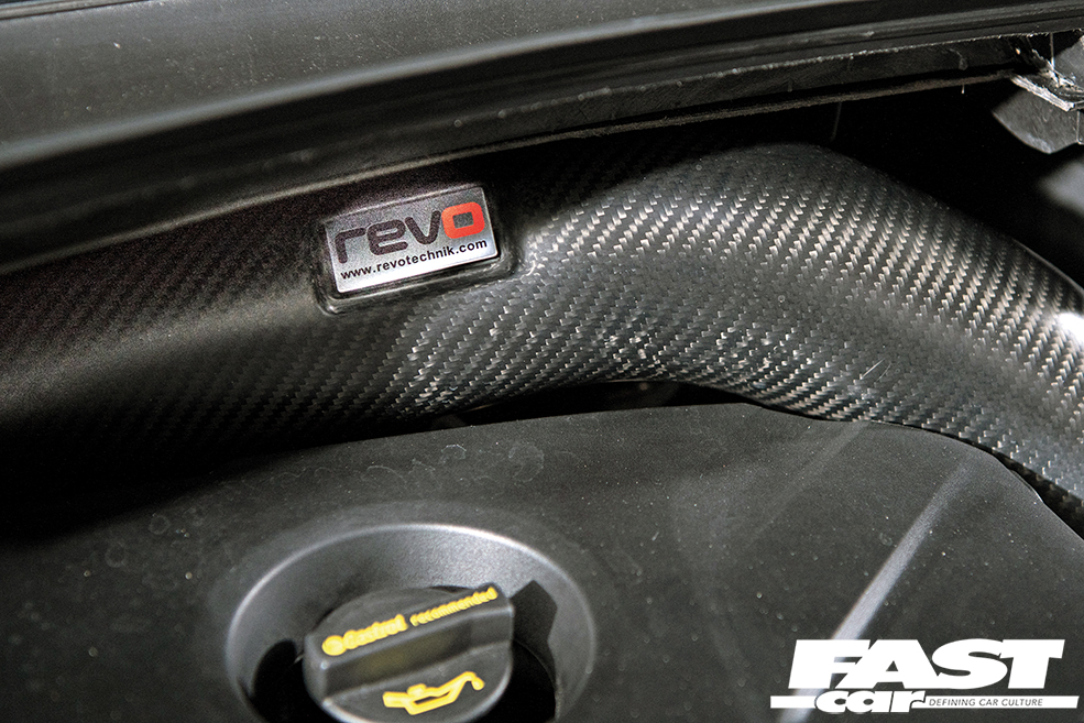 2261cc EcoBoost (Mk3 Focus RS), Revo Stage 2 software, Revo RS carbon intake, Revo sound suppressor, Milltek downpipe, custom cat-back exhaust system by Calum Hayes Fabrication (retaining MS-RT quad tails), Airtec RS intercooler