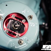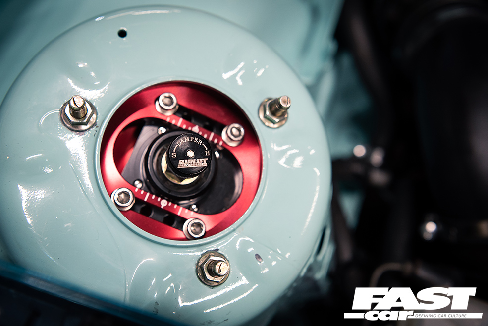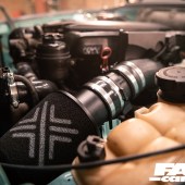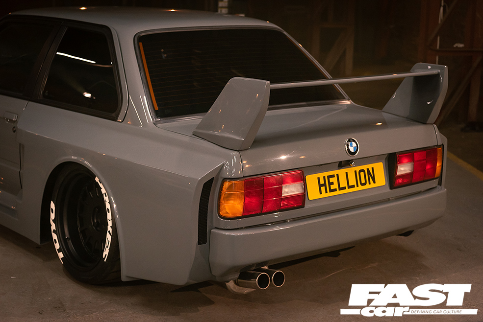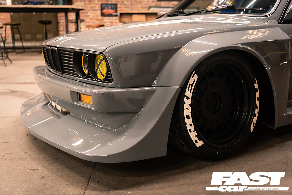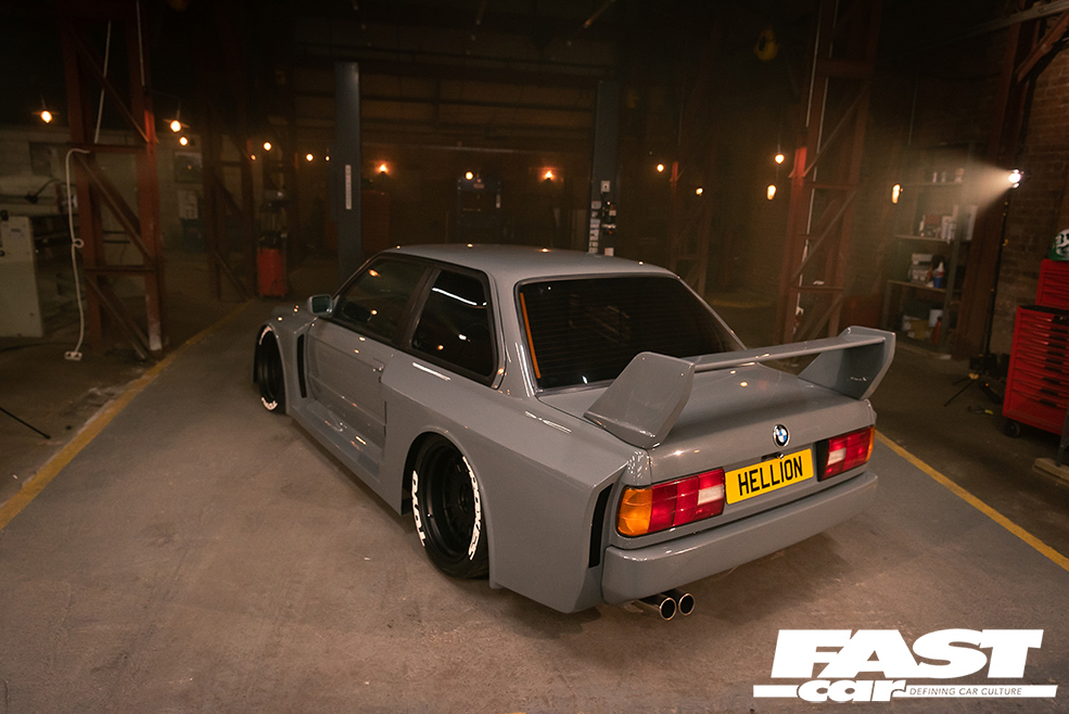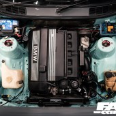 Obviously an off-the-shelf bodykit wasn’t going to cut it here, so the craftsmen at Fat Fender were drafted in to crack out the magic markers. This is one of the only companies in the UK who still create bodykits using the old-school foam-sculpting method, and their artisanal creation sublimely fuses Manga styling with Touring Car aggression. “We used the existing lines and angles on the car to enhance the body, making it wider, lower, and meaner,” says Helen. “It’s got a real DTM vibe. Moulds were made, and the fibreglass panels produced and bonded onto the original body. I wanted the kit to look like an extension of the car rather than something visibly added on, and together I think we achieved that. Fat Fender also painted the E30 for us; I think all cars look good in grey so we went with a mid-grey similar to Nardo on the exterior, then added a pastel mint colour to the engine bay. Ant and Jimmy hated the sound of it initially but came round to the idea when they saw it!”
