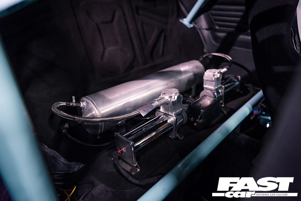 The front sports custom-stitched Corbeau RS2 recliners, which tilt to provide a perfect view of the rear, where the bench has been binned and replaced by a custom air install with every element of the mechanicals proudly on display. And quality audio was imperative, so Helen insisted upon a Pioneer smartphone receiver headunit, TS-A speakers in the front and slimline Class D active subwoofer in the back. The interior vibe is a balance of form and function, blending the 1980s design with a variety of tasteful modern upgrades.