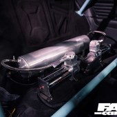 What’s interesting to note is that this bodykit is now available to the public to buy; initially crafted as a one-off, the Goblins and Fat Fender are sharing the fruits of their endeavours with the modding public! But they weren’t done yet, not by any means. The rusty sunroof was welded up and smoothed, and Helen didn’t want a fuel filler ruining the body lines so the petrol tank was removed, the spare wheel well welded up and a fuel cell fitted in the boot. The headlights are a cool detail too – look closely and you’ll spot that the inners have functional air intakes in the centres, surrounded by LED angel eyes. “I made these myself,” says Helen. “I found some intake pipes and funnels to fit the E30 which came all the way from Reno, then I recessed the angel eyes into them. They don’t exist as a concept so it was a pain in the arse – but I wanted them, so I made them!”