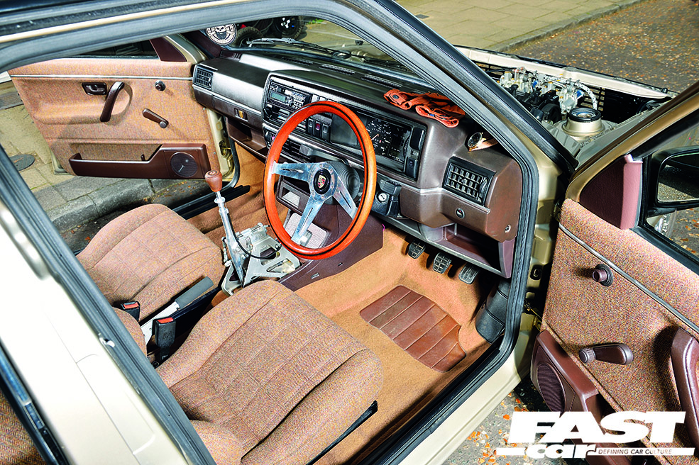 With the car coming with a love-it-or-hate-it brown interior from the factory, there was never any question about losing that originality. It was far too cool. With thoughts of the usual Recaro A8s floating around, Tom knew quickly exactly what it was he needed to keep the interior looking right.