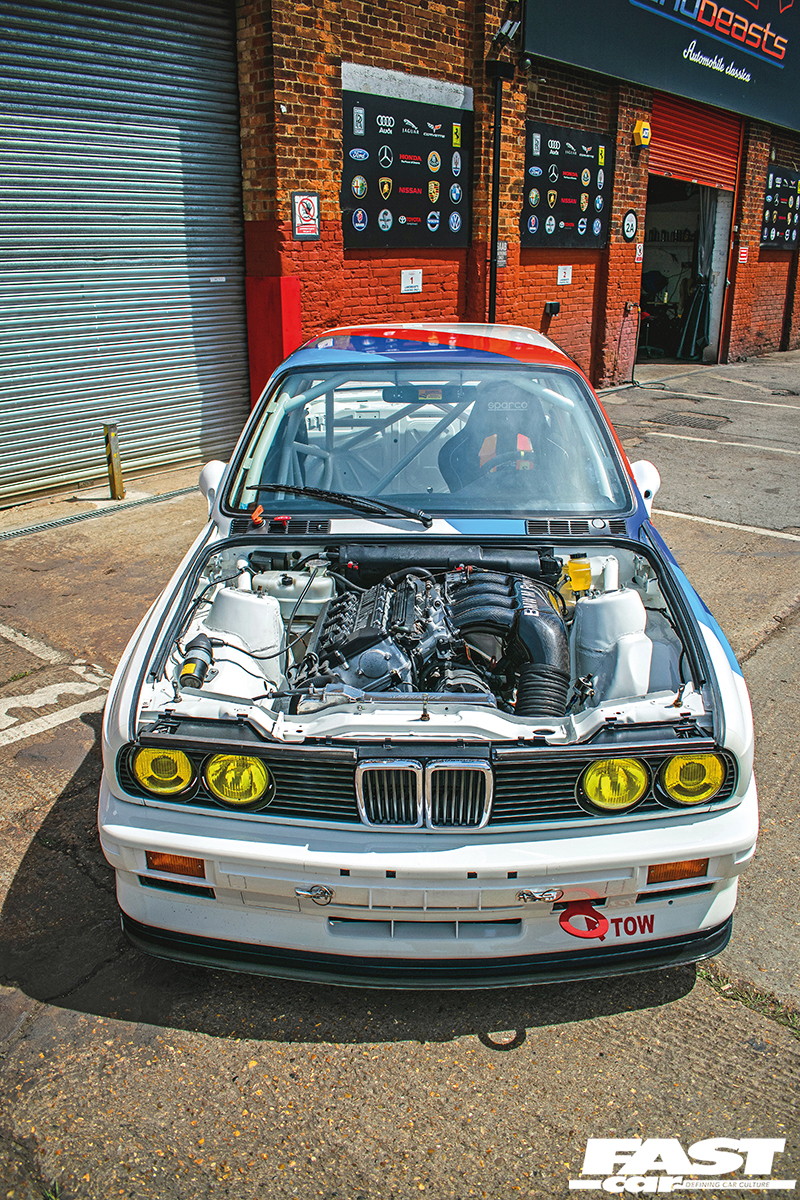 Steve is likely a little older than many of you reading this and grew up around cars, which fostered his love for all things automotive from a young age and gave him a taste for Bavaria’s finest in the process. “I have been interested in BMWs for as long as I can remember,” he begins as we chat. “Growing up in my dad’s car breakers, BMWs were almost exotica during the 1970s and following their success on the race track just made them all the more special,” he grins. “The incarnation of the E30 M3 in 1986 as a homologation special and its dominance in touring car racing culminating in it being the most successful touring car of all time – I had to have one!” he exclaims but obviously, he didn’t jump straight into race car ownership and there have been several cars – and BMs – along the way. Steve kicked off his motoring career with a 1974 Mk1 Ford Escort 1300 Sport, which he proceeded to heavily modify, while his first BMW experience was, unsurprisingly perhaps, an E30. “It was a black 1985 E30 318i, with fog lights and a sunroof. It was the perfect base for a 325i Sport lookalike, so I immediately sourced and fitted a 325i Sport interior, body kit, suspension and wheels. It was a sheep in wolf’s clothing, but I could afford to insure it,” he grins, which is always a bonus, and he currently also owns an E46 M3 CSL as well as David Smiterham’s Production BMW racer (also road legal), but what we’re really interested in is the car you’re looking at right here.